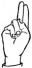 На ћирилици написано АНДРЕЈА ОЛУЈИЋ састоји се из 13 слова [?]. Исписано ћириличном једноручном азбуком за глувонеме:
